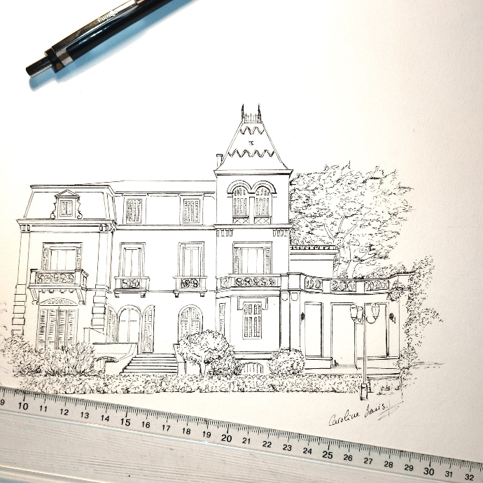 Dessiner est mon métier, ma passion. Formée aux métiers de l'architecture et de l'histoire de l'art, j'ai depuis conservé cette passion d'observer sans cesse le patrimoine architectural qui nous entoure et de dessiner à la main et à l'encre de Chine pour retranscrire le plus fidèlement ce que l'histoire nous transmet, tel un hommage aux architectes. Un travail de précision marqué par la finesse et la pureté du trait pour aboutir à des illustrations originales et inédites.